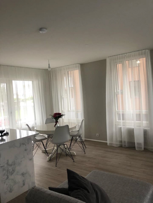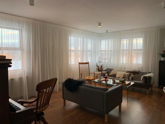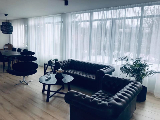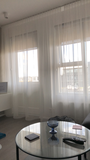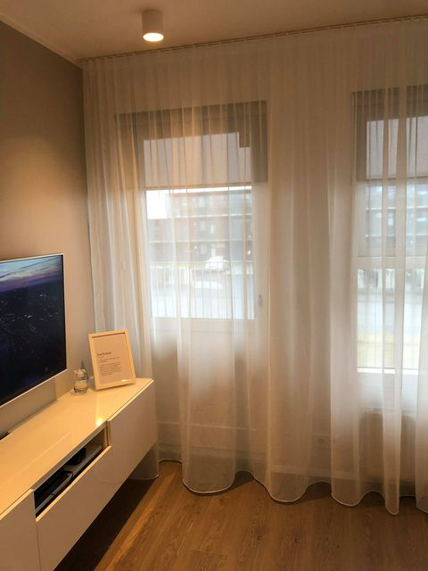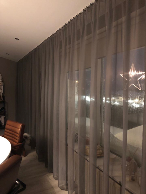 Við erum með Voile gardínu efni sem er þunna efnið sem er oft notað undir myrkvunargardínur.