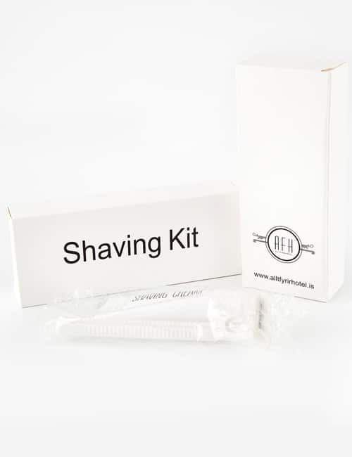 Raksettið inniheldur raksköfu og raksápu.