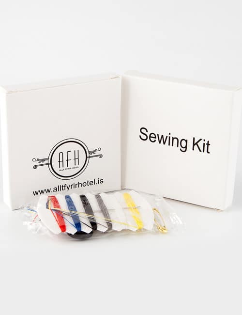 Saumasettið inniheldur, tölu, nælu, nálar og tvinna í nokkrum litum.